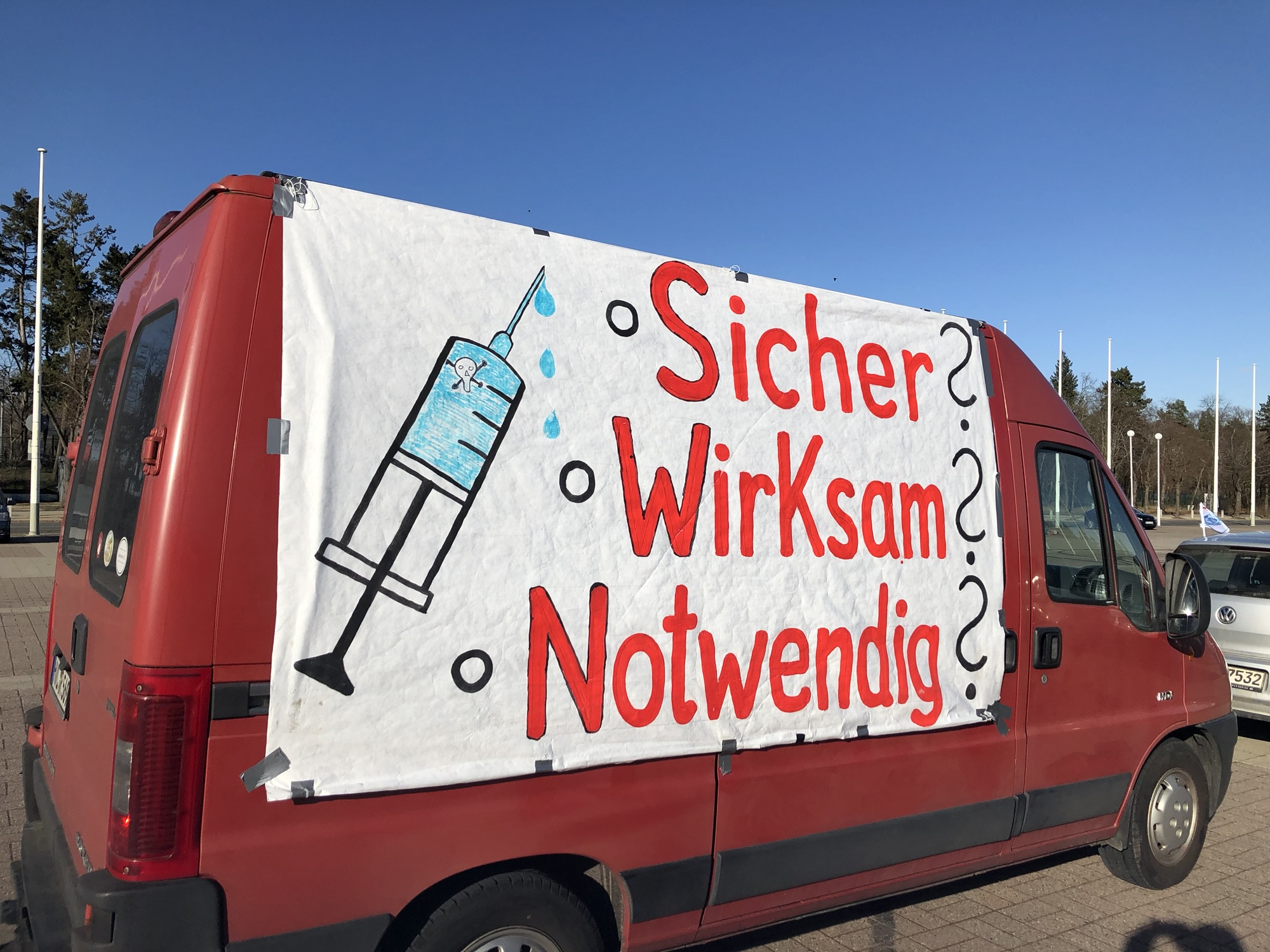 Dort hatte ein „antifaschistischer“ Frauenmarsch stattgefunden und war beendet und die Teilnehmer waren im Abfluß. Als sie von der bevorstehenden Ankunft des Autokorso Berlin hörten, kehrten viele zurück. Die Polizei trennte die beiden Demo-Lager. Die Antifas mußten in die Mitte des Herrmannplatzes und wir hielten Kundgebung auf der Straße.