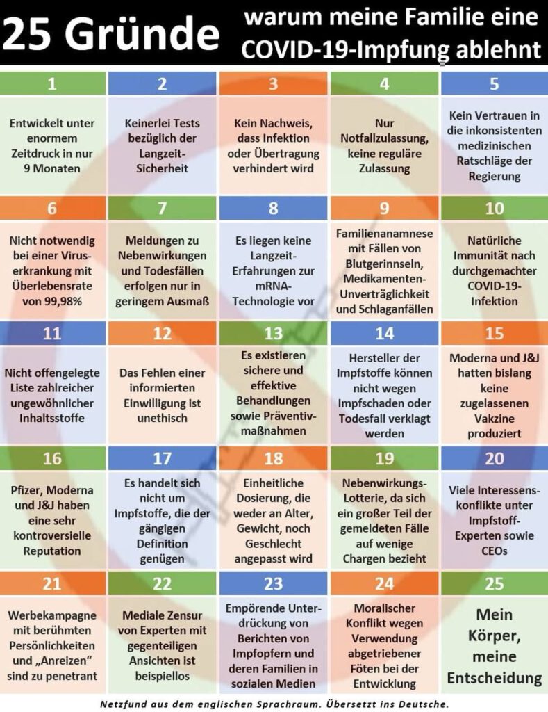 Wir informieren die Bevölkerung über Daten und Fakten sowie Entwicklungen und Auswirkungen der CORONA-Maßnahmen und decken Hintergründe im Zusammenhang mit dem Infektionsschutzgesetz auf.