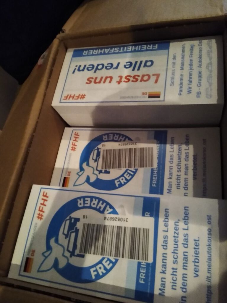 Ich hoffe, dass wir bis zum nächsten Freitags-Autokorso die Fahnen geliefert bekommen haben und Ihr dann Eure Autos gleich damit bestücken könnt.