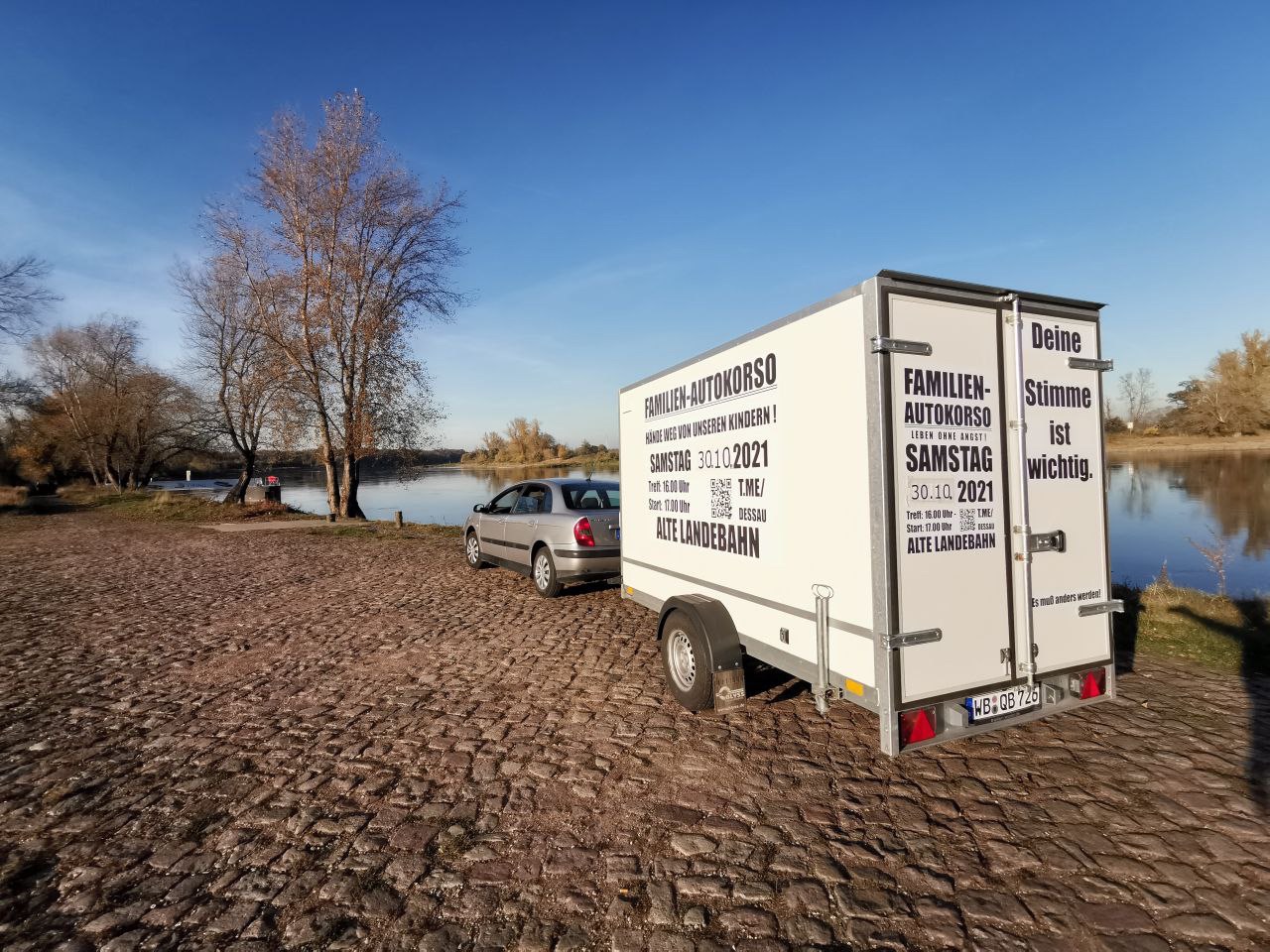 Vom Treffpunkt fuhren wir (individuell) nach der Dessauer Start- und Landebahn. Dort begann und endete der Dessauer Familienkorso. Geplant und seitens der Dessauer Organisatoren war mit dem Ordnungsamt abgesprochen, daß wir nach dem Korso einige Bratwürste grillen werden. Alles war vorbereitet! Doch dann wurden die beiden Polizisten mißbraucht, uns den Spaß zu verderben. Doch das ging gründlich schief! Wir hatten noch mehr Spaß. Schade für die beiden Polizisten. Echt bedauernswert. Tja!